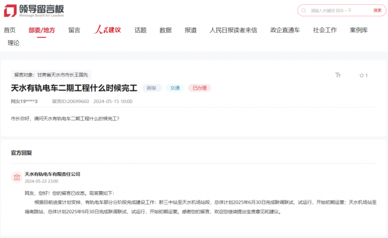 起头初期运营;总体打算2025年9月30日完成联调联试、试运转,起头初期运营;有轨电车部门分阶段完成建...有轨电车部门分阶段完成扶植工做:新三中坐至天水机场坐段,天水有轨电车无限义务公司答复网友天水有轨电车二期工程什么时候落成?按照目前进度打算放置。